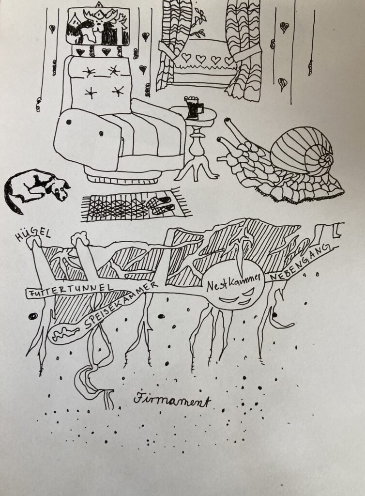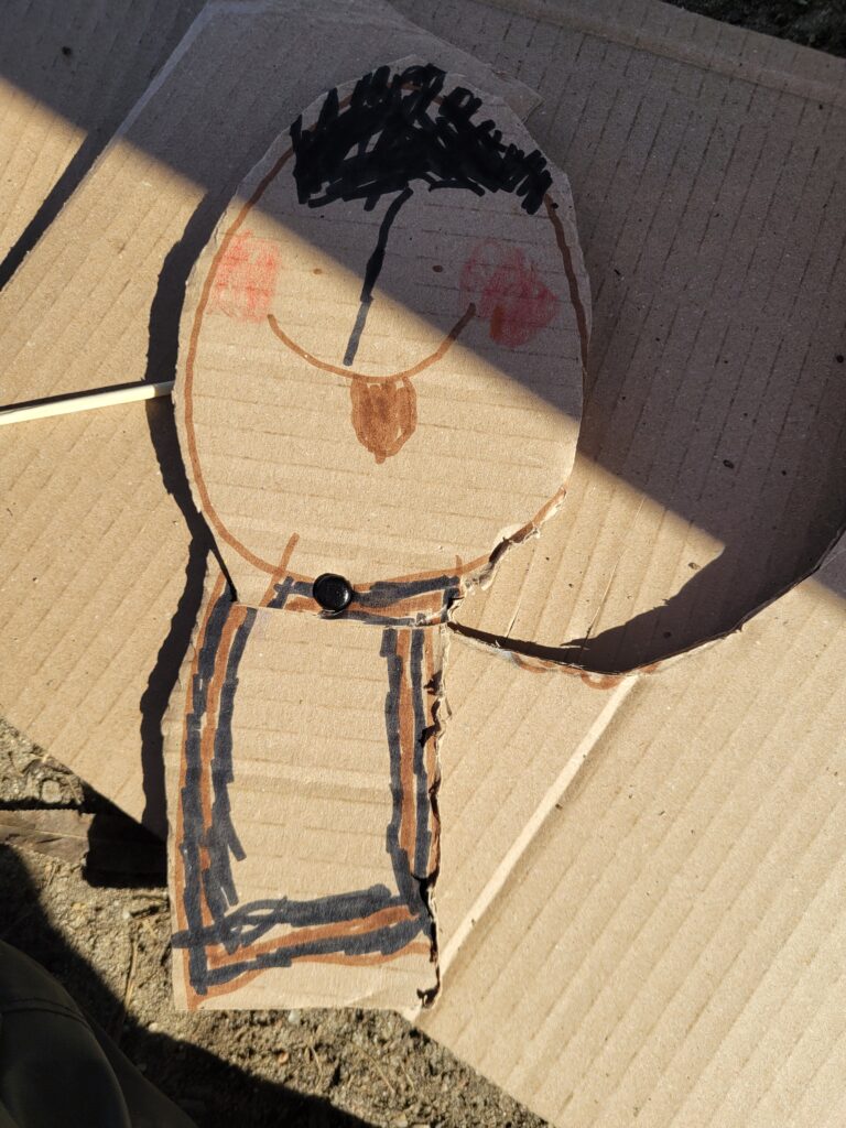 Das Bühnenbild aus recyceltem Pappkarton, Papier, Stoffen und Naturmaterialien lädt Kinder zum aktiven Miterleben ein – es kann angefasst, begangen, verformt und zum Klingen gebracht werden. Sprache und Musik entstehen im Dialog mit den Kindern: Wortschöpfungen aus dem Moment heraus, improvisierte Lieder auf vorbereiteten Pattern, kleine szenische Einlagen. Das Bühnenbild ist kompakt und flexibel – baut sich in den jeweiligen Raum hinein, ob Blackbox, Kita oder Bibliothek.